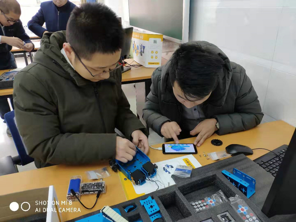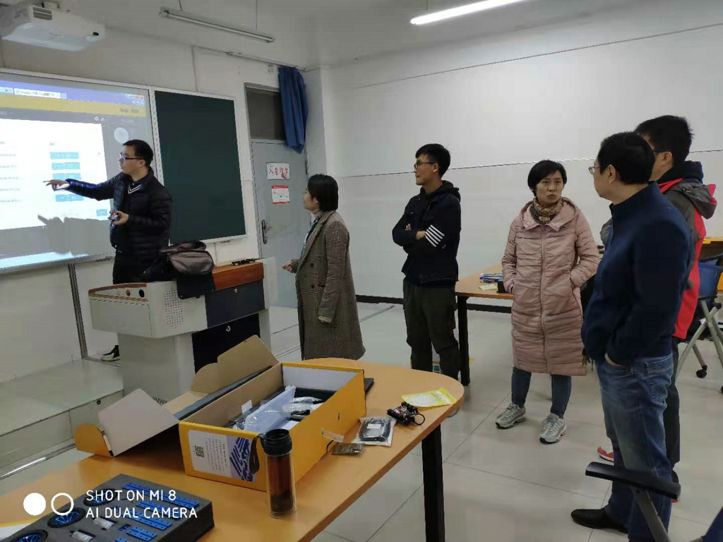 在学校领导的支持下,附中机器人创客教室在本学期建设完成,附中人工智能、创客教育、机器人教育的硬件办学条件有了很大的提高。为提高我校科技创新能力,附中音美信教研组马立组长带领全体信息技术学科教师在新建的机器人创客教室展开教研活动,进行了集中学习,在学习教研活动中,相关产品的厂商培训师带领大家熟悉设备、了解仪器特性、掌握配置方法,将厂商研发的设备、仪器的特征、优点逐一向老师们介绍,全体信息技术教师进行了详细的学习及细致的探讨,整个氛围愉快而又有序。