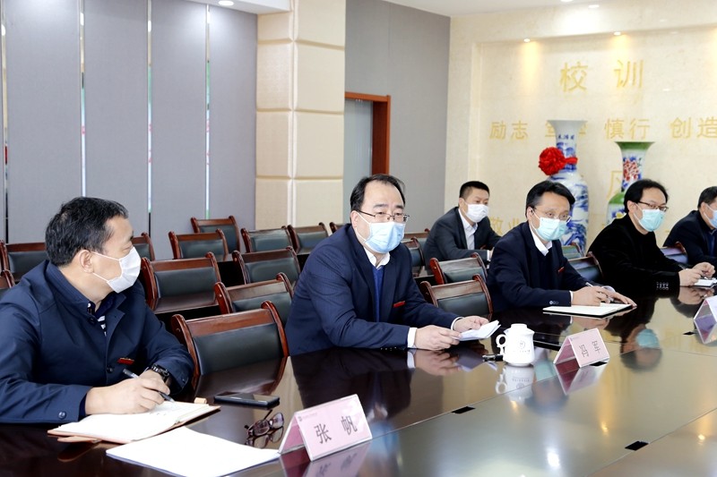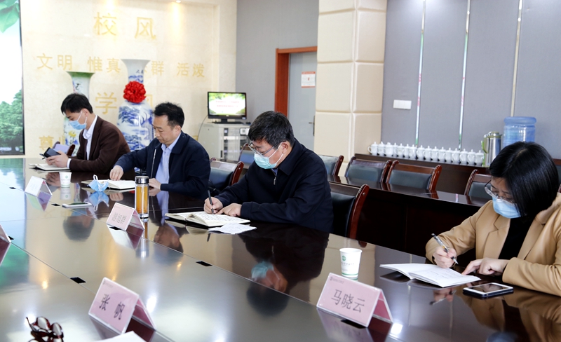 在随后召开的座谈会上,我校校长冯军就附中疫情防控和开学准备工作进行了汇报。冯校长表示,我校在疫情开始就成立了疫情防控工作指挥小组,在接到市教育局关于开学工作的安排后,又立即成立了开学前后疫情防控专项工作领导小组,下设协调联络组、宣传组、疫情监控组、学生教育及应急反应组、教学管理组、技术保障组等12个工作小组,统筹兼顾,分类指导,统一协调落实开学工作。冯校长着重从五个方面详细介绍了目前的工作。一是开学前人员健康排查及培训工作,建立全校师生员工的体温及健康状况监测台账,并签署健康信息真实性承诺书,在确保所有人员健康的前提下按期开学;二是学生开学前培训及管理工作,利用官微、校园网、网课主题班会、微信群等多种渠道做好学生疫情防护、身心健康等方面的宣传教育;三是校园环境治理及物资储备工作,对校园进行彻底清扫消毒,配备充足的红外成像测温仪、口罩、防护服、洗手液、消毒剂等防疫物资;四是完善“两案九制”,明确制度,责任到人,制定开学期间师生一日规范;五是建立“错峰上学”“错峰放学”“错时上课”等方案,按照不同学段精准分析学情,科学制定和完善疫情期间教育教学计划,做到疫情防控和教育教学两不误。党委书记陈勇刚表示,自新冠肺炎疫情发生以来,附中党委按照陕西师范大学党委要求,深入学习贯彻习近平总书记关于疫情防控工作的重要讲话和指示批示精神,坚决贯彻落实党中央决策部署,当前,附中将按照 “五个一律” “四个不准”原则,众志成城、坚定信心,全力以赴备战开学,确保师生顺利返校。