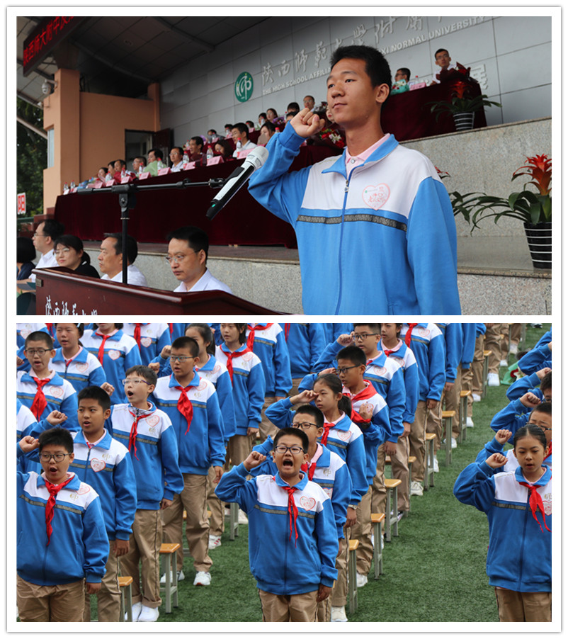九月的原野芬芳弥漫,九月的大地金黄闪烁。9月10日上午8时我校在操场隆重举行2020-2021学年度开学典礼暨第36个教师节庆祝大会。中共陕西省委宣传部办公室主任史方、副主任吕焰,陕西师范大学党委宣传部部长马晓云,国防科技大学信息通信学院试验训练基地副主任王飞,陕西师大附中校长、附中分校执行校长冯军,分校校长边团结,附中副校长沙瑞龙、张帆、郭胜、高丽文,分校副校长刘晓晴等领导以及优秀教师代表,家长代表,我校及分校全体师生参加了大会。大会由我校党委书记陈勇刚主持。