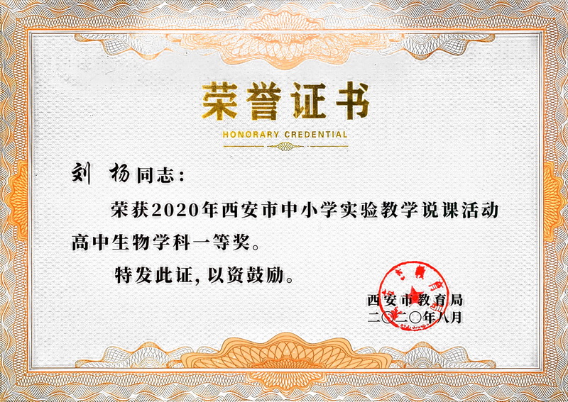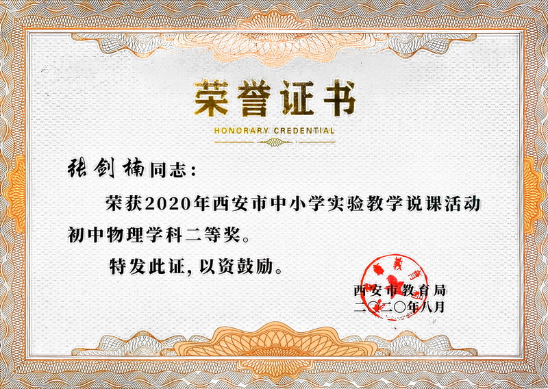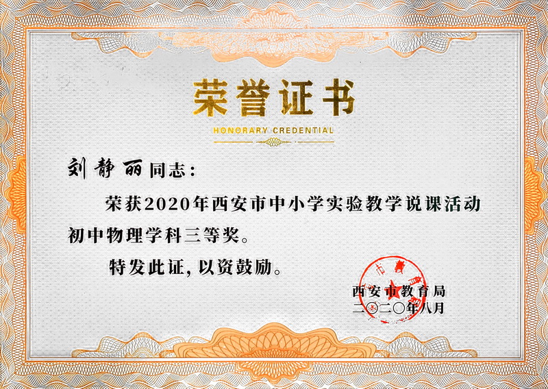 我校9位教师在2020年西安市中小学实验教学说课活动中表现突出,其中董勇、孔令操、刘杨3位老师获得一等奖;张剑楠、鲁林昊、王鹏3位老师获得二等奖;刘静丽、高雅、陈沙3位老师获得三等奖。希望各位教师珍惜荣誉,继续学习,不断成长。