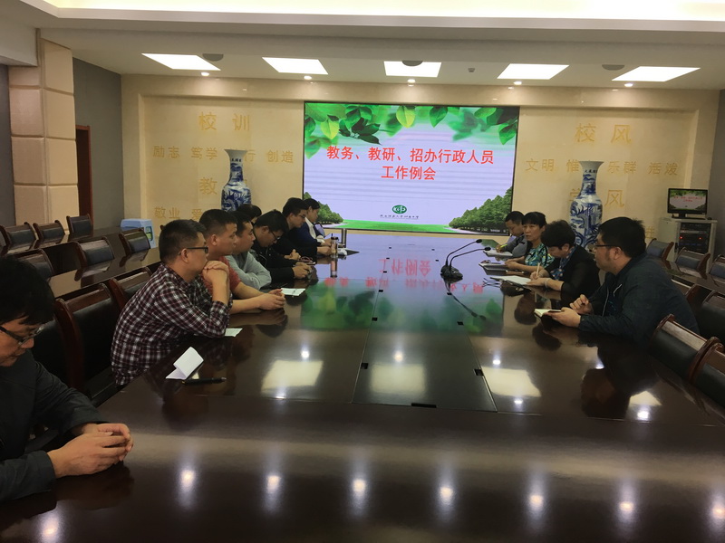 9月19日下午,教务处、教研室、招办本学期第二次工作例会在崇是楼五层大会议室召开。会议由高丽文副校长主持,教务处、教研室、招办全体工作人员参加了会议。