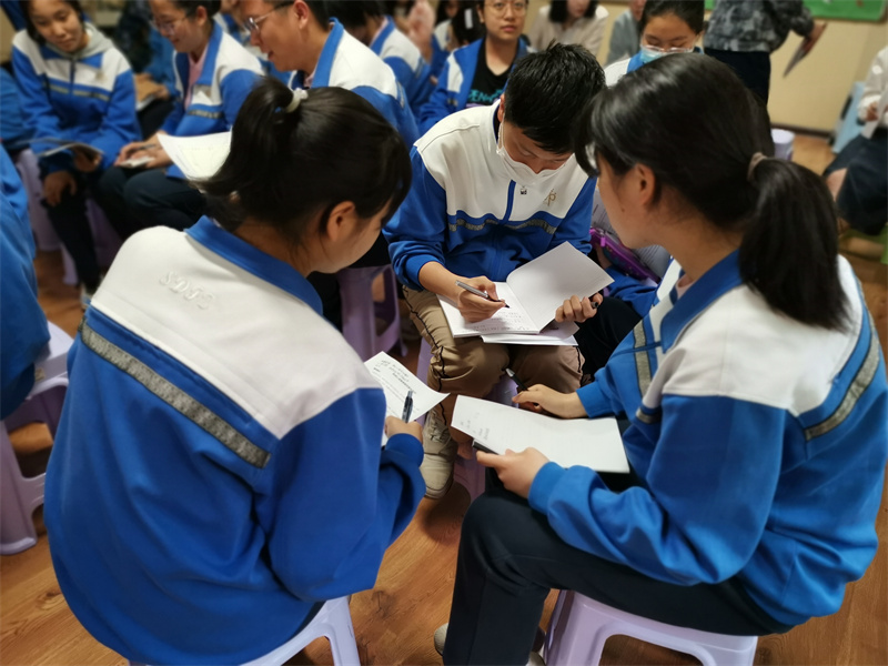 接着,岑老师邀请大家结合自己的经验,引领大家思考心理情景剧和一般校园剧的区别,通过观摩我校优秀作品《爱的枷锁》并深入讨论,令创作团队对校园心理情景剧有了清晰的认识。成员们分享了“心理情景剧的创作要贴近现代中学生的生活和视角。”“心理情景剧需要选角合理,故事真实。”等观点。