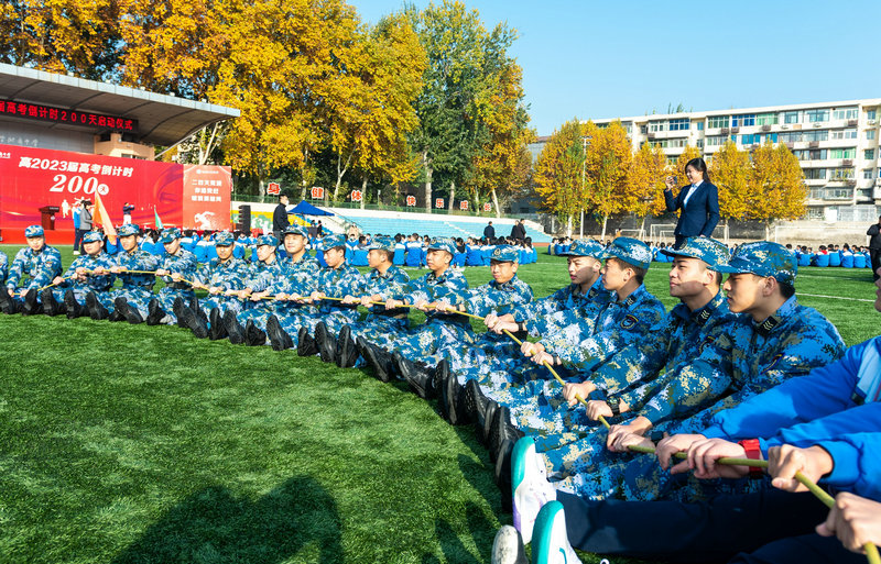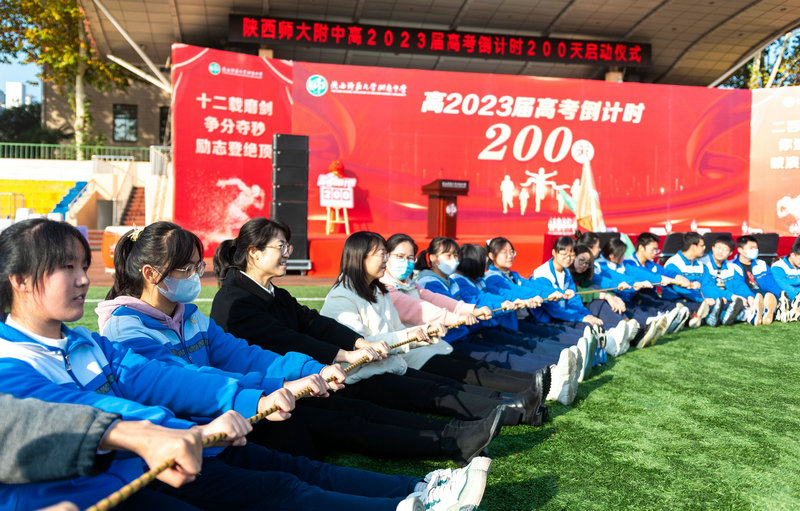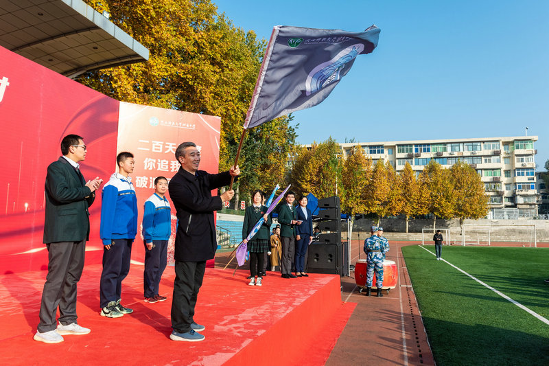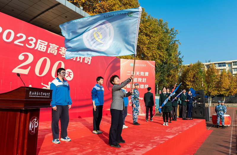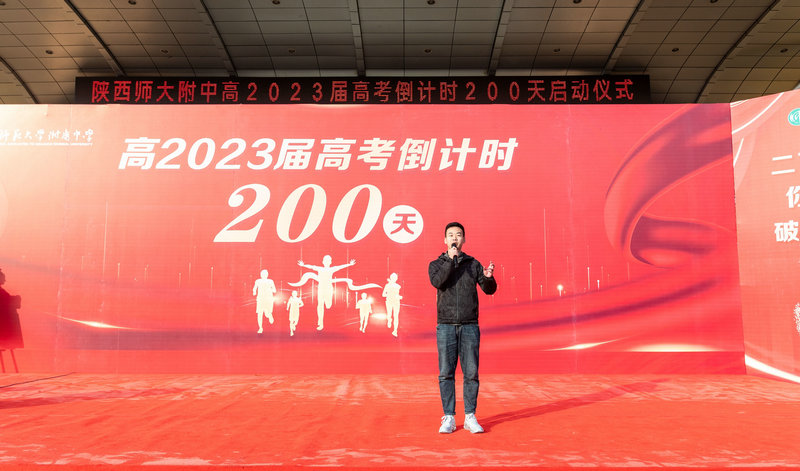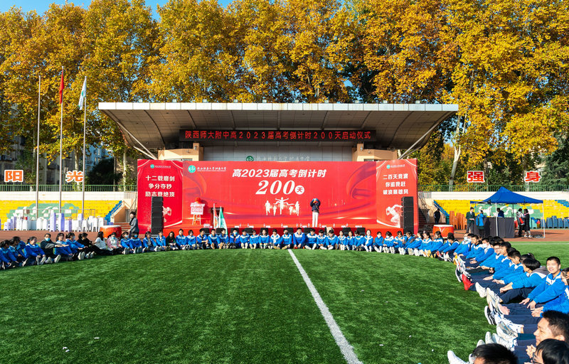 2022年11月19日上午,秋高气爽,阳光正好。陕西师范大学附属中学高2023届高考倒计时200天启动仪式在附中操场举行。我校党委书记、校长冯军,党委常务副书记董喜林,党委副书记郭彦雯,副校长郭胜、高丽文、王中仁,教务处副主任董翼,政教处副主任鲍青青,总务处副主任李炜,高2023届全体师生共同参加了此次活动。