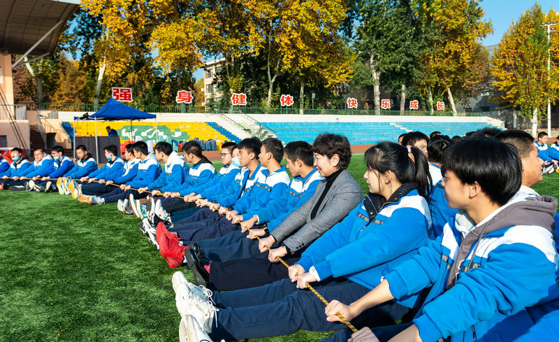 随后,我校心理发展指导中心冯泽鑫老师组织全体高三学生进行了别开生面的“动力圈”挑战。校领导和高三全体老师与孩子们一起围坐在操场,“拧成一股绳,团成一个圆”,用整齐划一、协同一致的节奏不断突破自我极限,展示出合作共赢的精神。