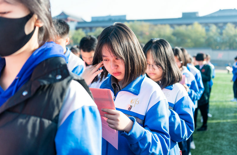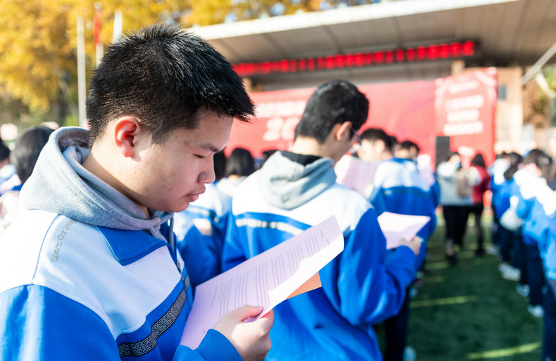 最后,学生代表、高三(1)班纪晓漫同学发言,她表达了对母校和各位老师的感谢,并表示一定不负母校培养,在200天里突破自我挑战极限,用优异的高考成绩见证自己的青春奋斗。全体学生在纪晓漫的带领下,将自己的誓言留在了阳光下的校园。