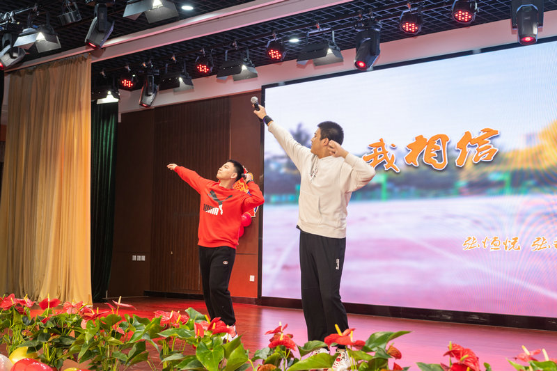 高三(5)班张恒悦等演唱的《我相信》让整个会场洋溢着青春的活力。最后,在《生日快乐》的乐曲中,年级组长王磊老师与各班学生代表送上蛋糕,带来祝愿,整场仪式在温馨的氛围中缓缓落幕。