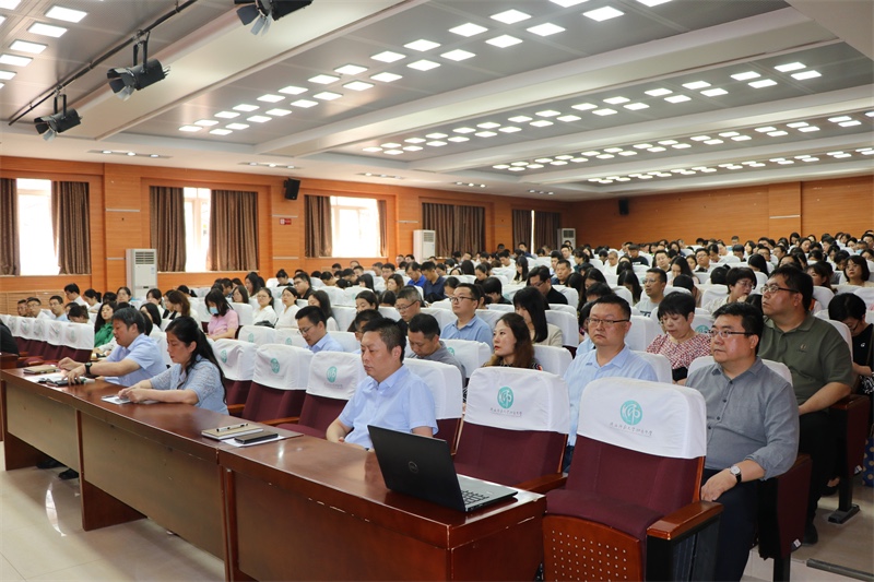 随后,我校党委副书记郭彦雯在会上强调新学期要加强党的全面领导,坚持不懈用习近平新时代中国特色社会主义思想和党的二十大精神武装全校师生,加强意识形态和师德师风建设,将党对教育工作的全面领导落实到办学治校、教书育人全过程。