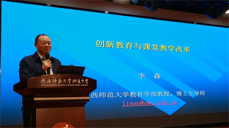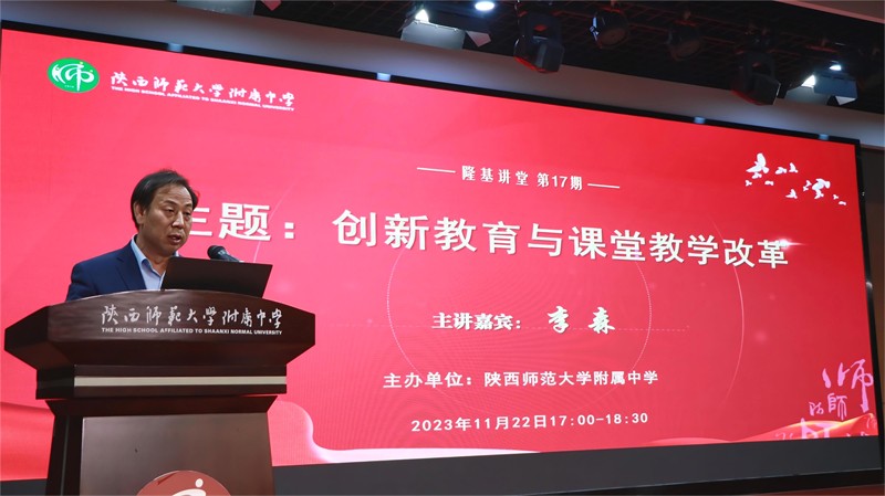 11月22日下午,陕西师大附中名校+共同体在陕西师大附中崇文楼五层报告厅举办《隆基讲堂》第十七期报告会,附中全体教职工、附中“名校+”共同体部分教师参加了报告会。报告会特邀陕西师范大学教育学部教授、博士生导师李森主讲《创新教育与课堂教学改革》的主题报告。报告会由附中党委常务副书记董喜林主持。