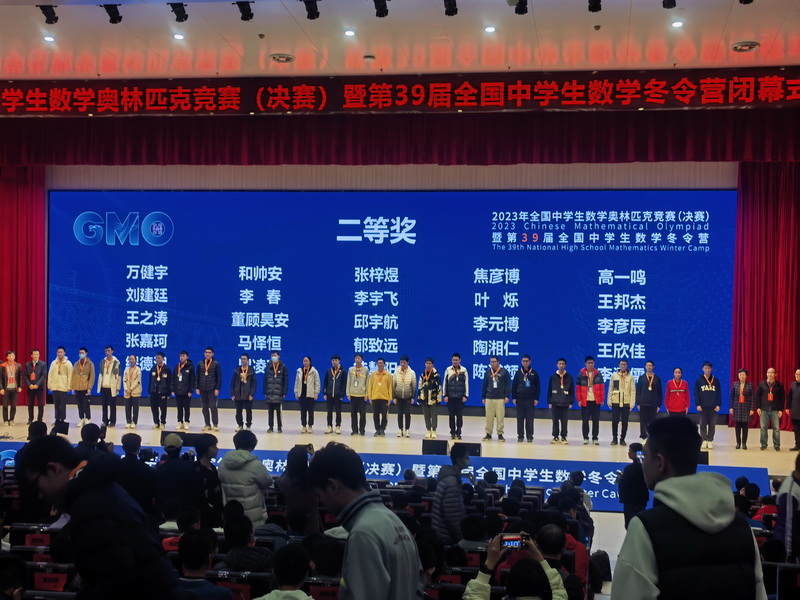 2023年11月26日至12月2日,2023年全国中学生数学奥林匹克竞赛(决赛)暨第39届全国中学生数学冬令营在湖北省武汉市武钢三中成功举行,来自全国各地(含香港、澳门代表队)及俄罗斯、新加坡代表队共计678名学生参加了此次比赛。经过两天的激烈角逐,我校高二年级9班李元博同学摘得银牌。