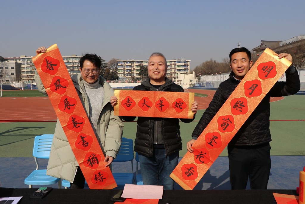 14时整,活动正式拉开帷幕。老师们满怀喜悦之情,纷纷汇聚于篮球场参与活动。在春联书写区,擅长书法的教职工们现场挥毫泼墨,一幅幅寓意吉祥、书写精湛的春联跃然纸上,为即将到来的新春佳节增添了喜庆的氛围。老师们不仅可以欣赏到精美的春联作品,还可以亲自撰写,以笔传情,送上暖暖的新春祝福。