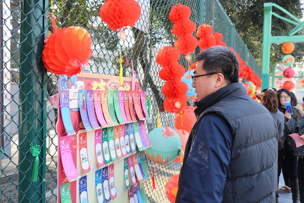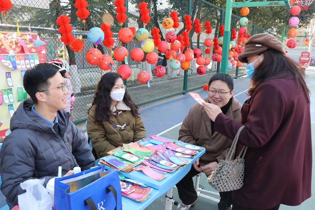 猜灯谜活动同样备受欢迎。篮球场悬挂着各式各样的灯谜,吸引了众多教职工驻足观赏、思考。大家或低头沉思,或相互讨论,猜中谜底后脸上洋溢着满足和喜悦的笑容,既享受到猜谜语带来的欢乐,又能感受传统文化的熏陶。