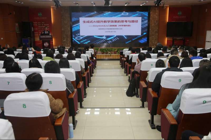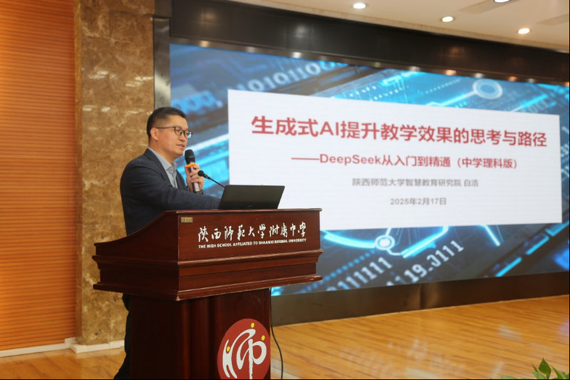 Deepseek 等AI大模型的出现,犹如一颗投入湖面的巨石,在社会和教育领域激起千层浪,为引导教师更好地应用AI,2025年2月17日、18日下午,我校特邀请陕西师范大学智慧教育研究院白浩副院长,分别为理科和文科全体教师开展了《生成式 AI 提升教学效果的思考与路径》专题报告。