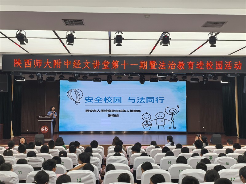 这一年,我校通过系列法治教育举措,增强师生法治意识,护航青春成长,平安校园建设取得显著成效。为落实法治教育进校园要求,我校及长安校区多措并举推进法治校园建设——聘任西安市人民检察院党组书记、检察长陈明,市公安局长安分局郭杜派出所负责人陈平分别担任附中及长安校区法治副校长,严格执行相关聘任管理办法。2025年,我校及长安校区先后举办两期 “经文讲堂” 法治教育活动,邀请西安市人民检察院张艳娟、刘晶晶检察官分别以《安全校园,与法同行》《检察官与同学们的一场对话》为题,结合真实案例开展互动授课,覆盖初中非毕业年级师生。系列举措深化校检合作与法治教育、德育融合,强化师生法治观念与自我保护能力,构建协同育人保护网,为学生平安健康成长保驾护航。