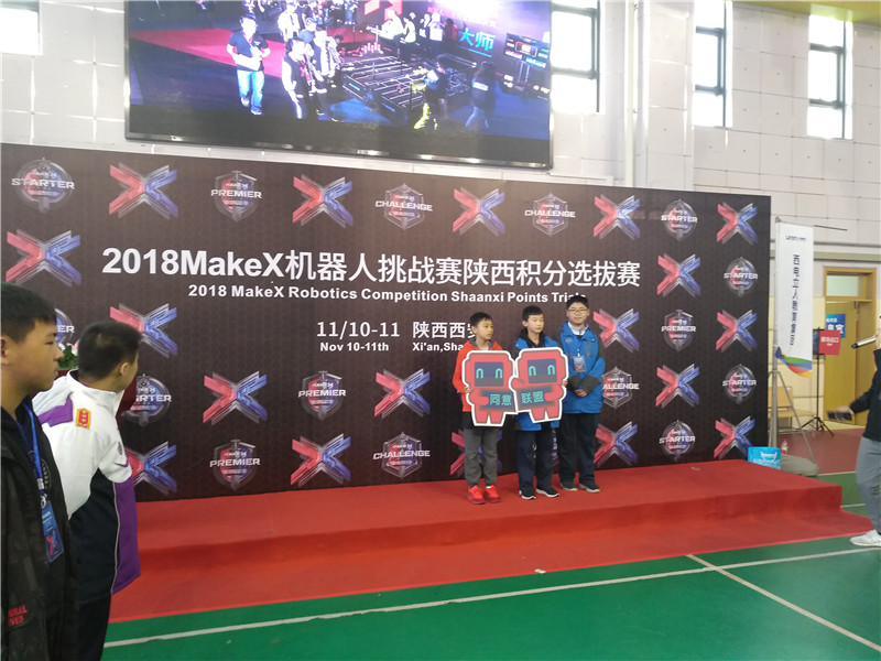 2018年11月10日、11日,2018MakeX机器人挑战赛陕西省积分选拔赛在西安高新第六小学举行,我校乐创机器人社团张嘉豪,张郁桐,李贺涵,黄泽林4人在指导老师李云海的带领下参加了此次比赛。