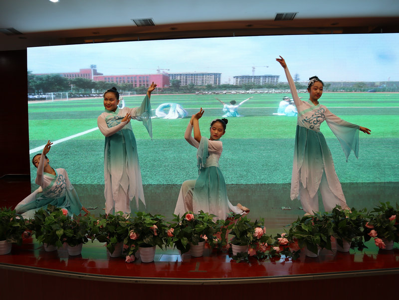 最后,我校部分社团为大家带来了一场精彩的社团汇报演出,朗诵与播音主持社团带来的作品《橘颂》及《纪念党的十九大·五年抒怀》拉开了该环节的序幕,同学们深情的诵读:“继往开来的中国梦啊,将两个一百年的光荣时刻与民族复兴大业精准地契合在一起”充分地展现了大家昂扬向上的精神风貌;街舞社团带来的舞蹈《我的新衣》、原啦啦操社团带来的《知否,应是……》、健身社团带来的体育表演《体能操》表演形式风格各异,展现了我校学生的青春活力和深厚的艺术功底;汉服社团带来的朗诵与舞蹈《汉家衣裳》、博通社团带来的中国古今服饰展示《衣袂翩跹 踏史而来》向大家展示了华夏传统文化,重现了华夏传统礼仪与我国古今服饰的变化,意义非凡;嘹亮歌唱社团带来的歌曲《鹿be free》以时而婉转动人、时而激情澎湃的歌声,使得现场欢呼声不断;初2021届学生代表带来的舞蹈《送你一个长安》以优美的舞蹈动作、扎实的舞蹈功底赢得在场观众一致好评;服装设计与表演社团带来的服装设计展示秀《神采飞扬》将现场的气氛推向了高潮,一个个小模特们神采奕奕、步伐矫健、阳光自信,充分展现了我校学子积极向上、健康快乐的青春风采。